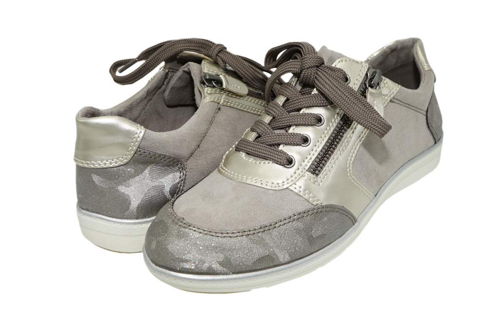 Dieser Sneaker von Jana läßt sich wahlweise entweder per Schnürung oder per Reißverschluss verschließen.