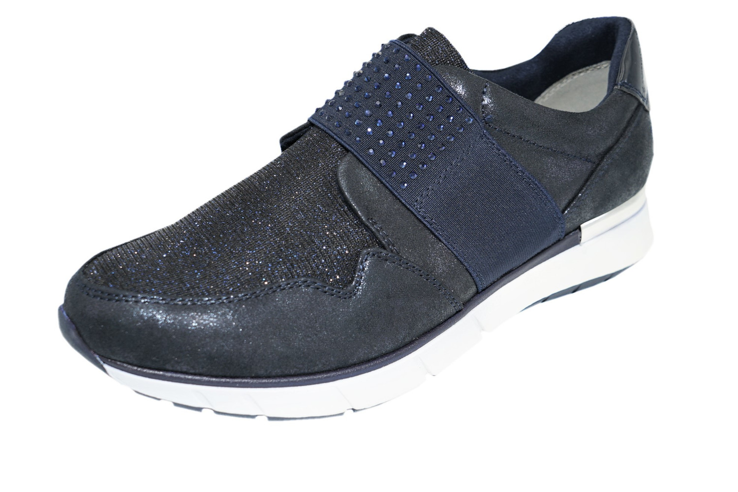 Das hervorstechende optische Element ist der seitliche Silberstreifen mit Glitzer, ein natürlicher Kontrast zum Weiß.